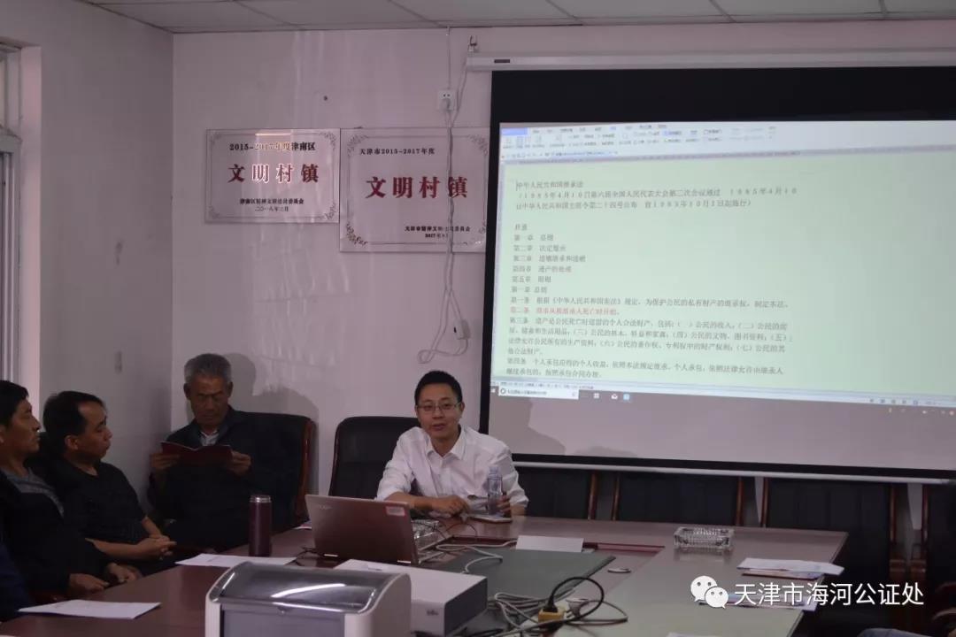 2018年5月22日,海河公证处公证员程雪来到咸水沽镇惠丰村村民委员会,参加咸水沽司法所组织的法律宣传活动。在宣传活动中,公证员对继承法的相关法律知识,实践中银行存款、房产等财产的继承方式,以及继承公证的办理条件等问题进行了授课讲解,并解答了村民提出的相关问题。这次宣传活动在乡村社区中引起了积极反响,主动预防避免了可能发生的社会纠纷。